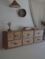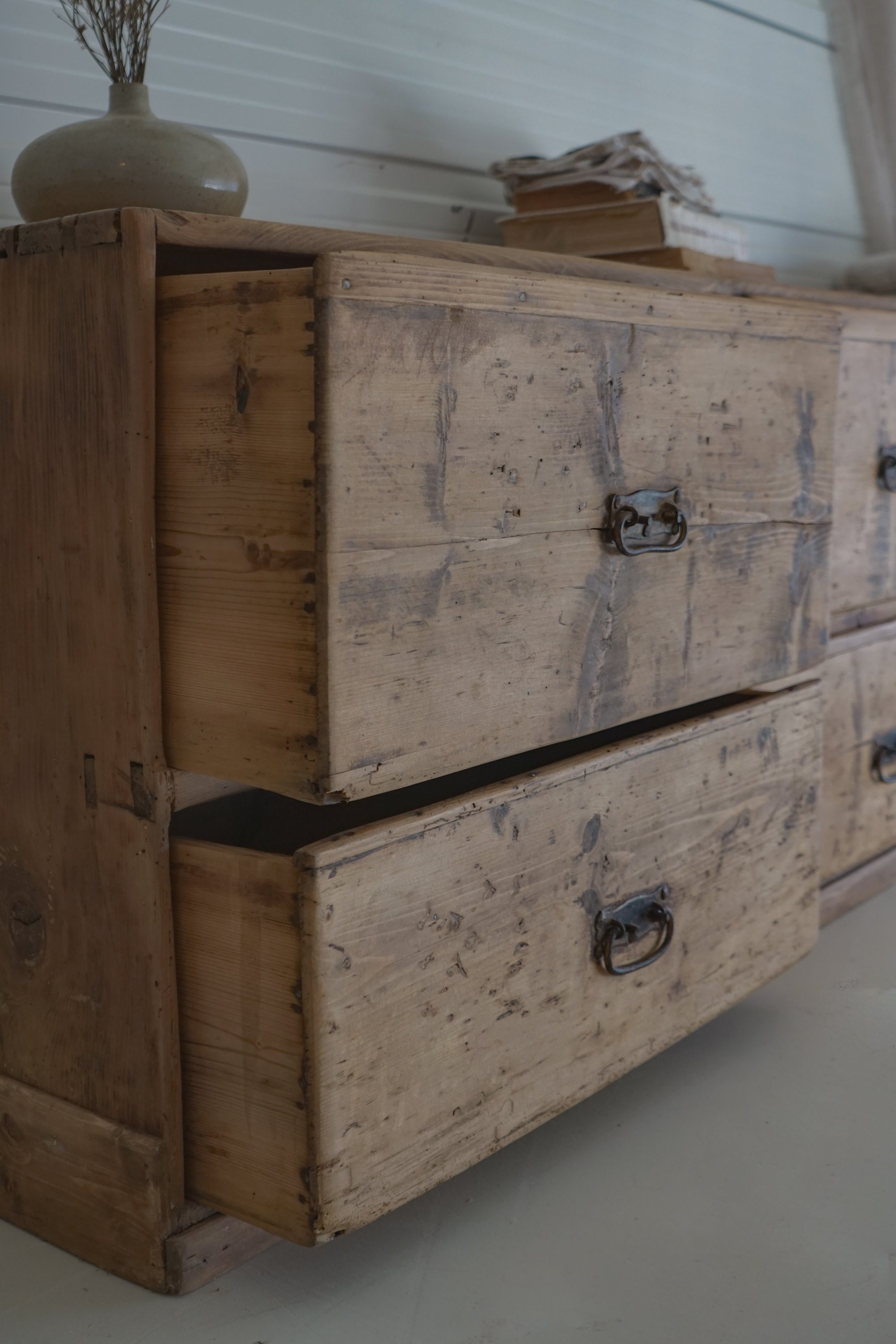 🌿 Superbe ancien meuble de métier en bois, patiné naturellement par le temps. 6 tiroirs spacieux (avec poignées fer forgées d’origines) offrent un grand volume de rangement tout en conservant un charme authentique et une âme unique.