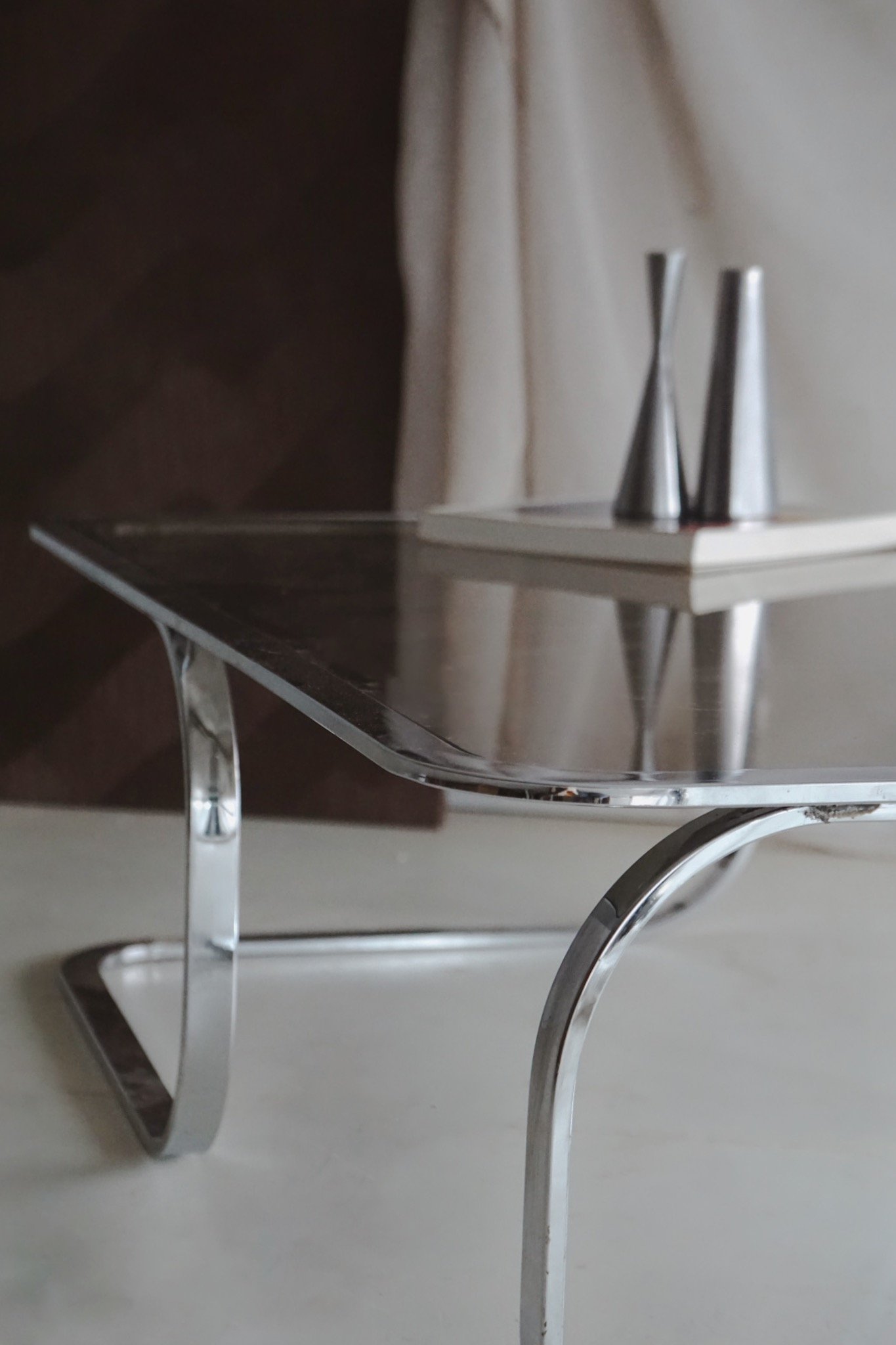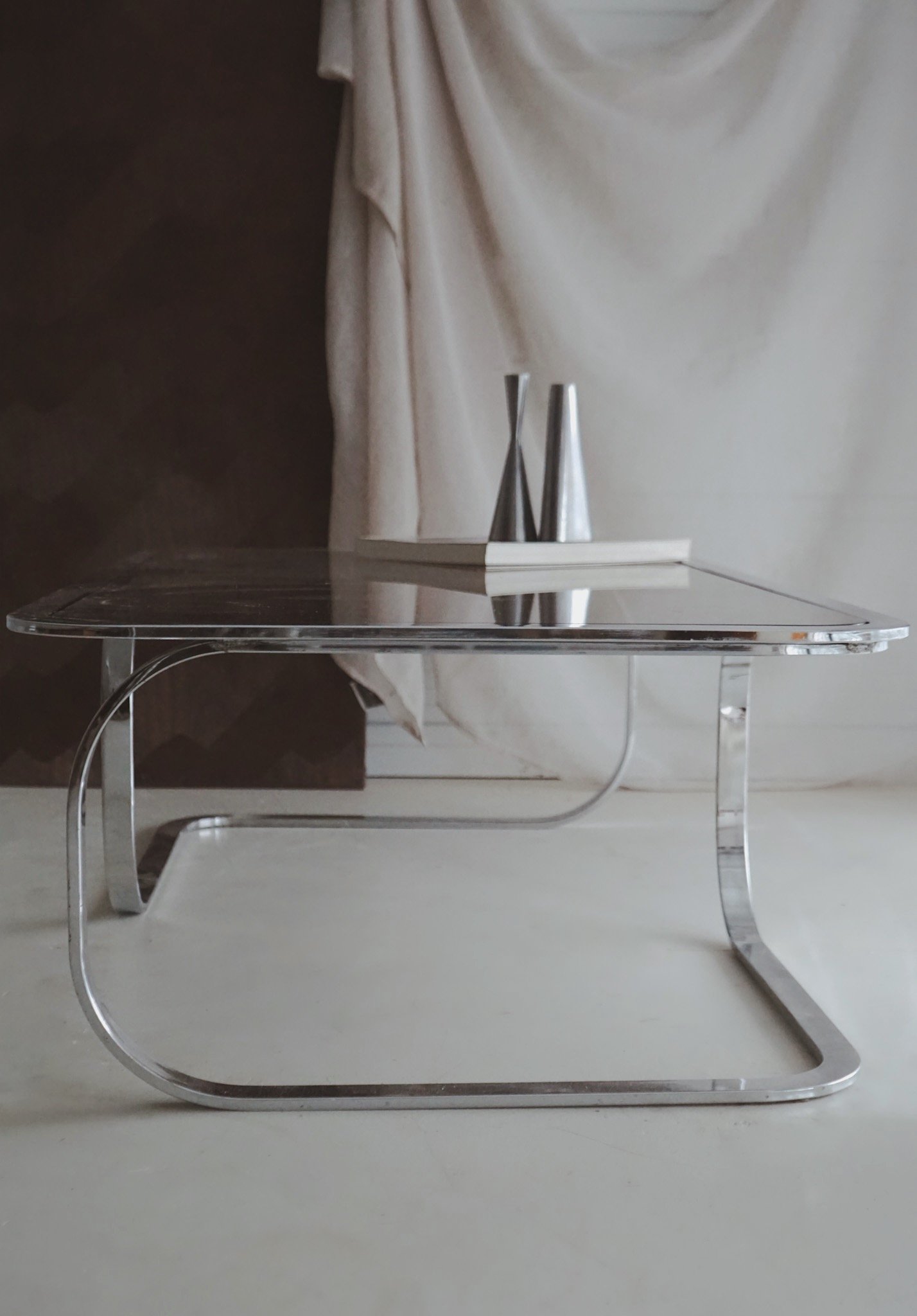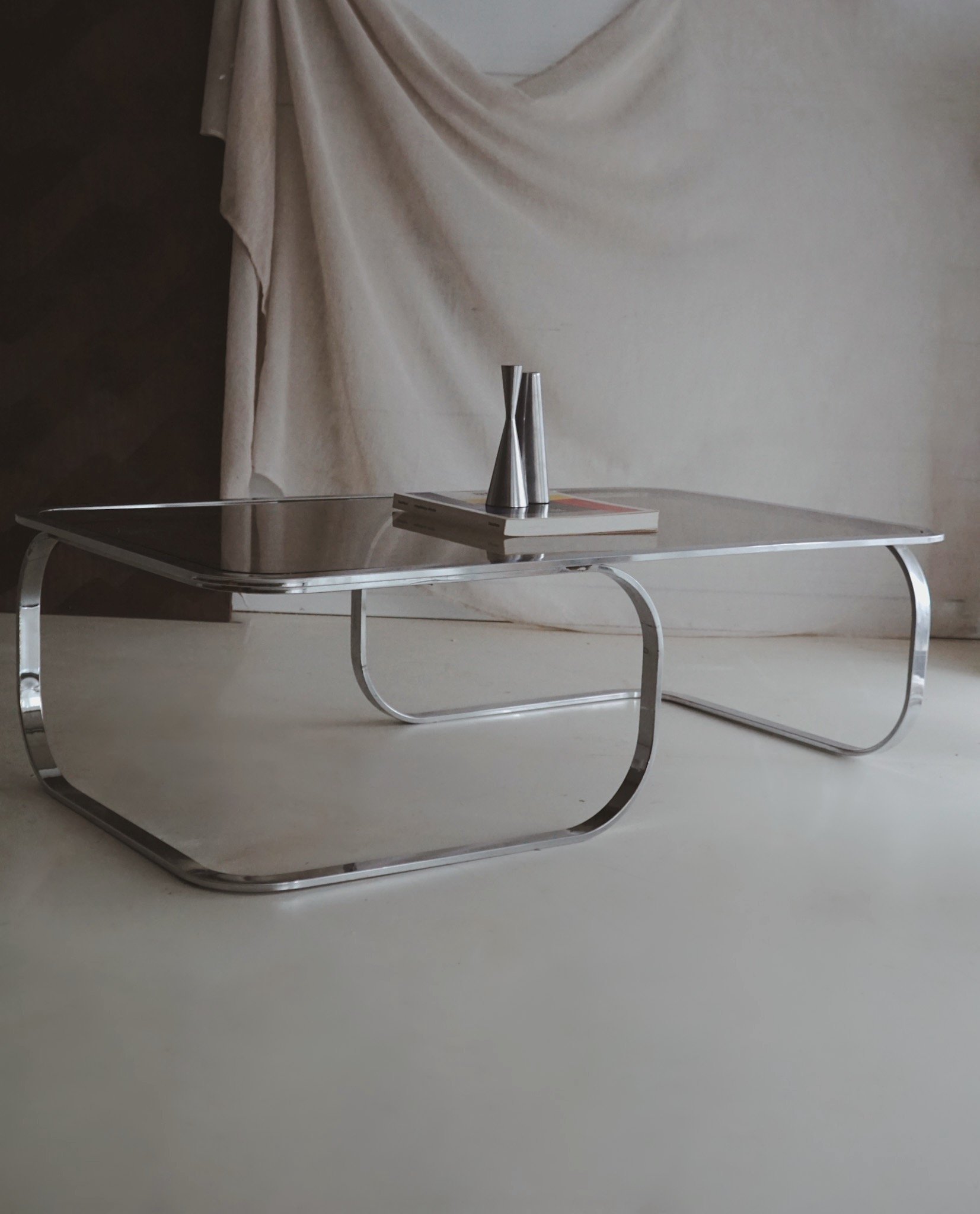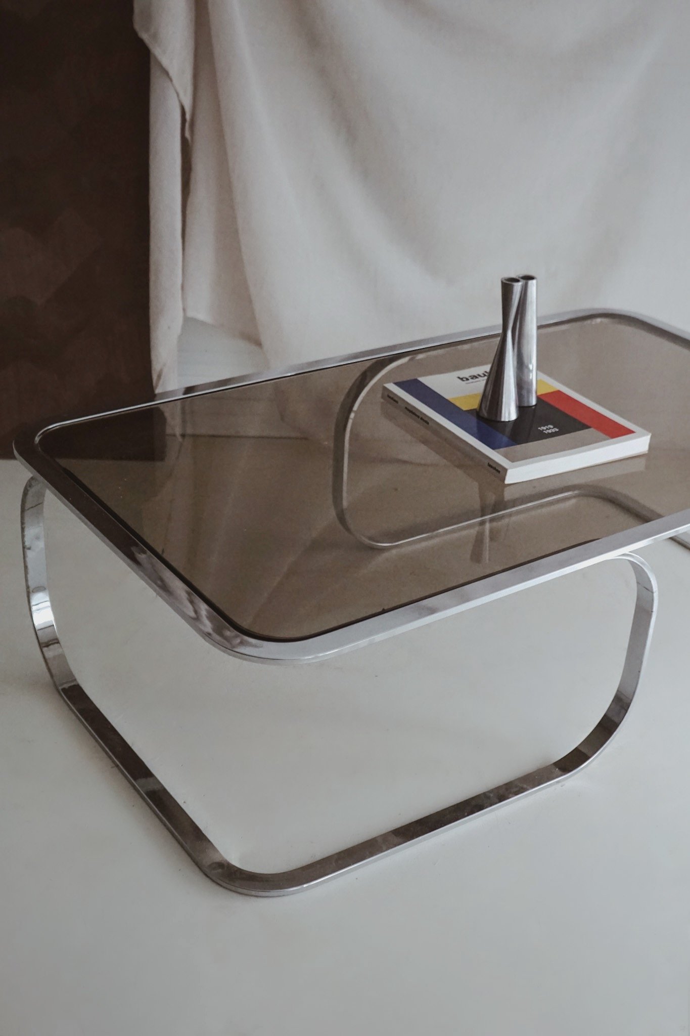 ☆ Table basse vintage chrome & verre fumé – vintage ☆